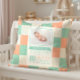 Celebrate your little one’s arrival with this personalized photo birth stats pillow. Made from soft, cozy material, it features a quilt like style in sea foam green and salmon. Add your baby’s name, birth date, weight, length, and time of birth for a keepsake that’s as meaningful as it is comfortable. Customize with your favourite newborn photo to create a one-of-a-kind design that’s perfect for the nursery. Ideal for snuggling, or displaying as a treasured memory. This custom baby pillow for the nursery also makes a thoughtful gift for new parents, baby meet and greets, or christenings.