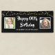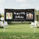 Celebrate any age birthday with this personalized, custom colour banner sign decoration featuring two photos of him or her, gold string lights and your custom text (the sample shows HAPPY # BIRTHDAY NAME) in your choice of font styles, text colour and background colour (shown with white text on black). CHANGES: Make font style and colour changes in EDIT. BANNER OPTIONS: The sample is shown in the 2.5x6' size; other sizes are available on the ordering page as well as the option of transferring the design to a foam board, poster, tapestry or other product or have the designer convert it to a DIGITAL DOWNLOAD file for printing locally BEFORE ordering. ASSISTANCE: For help with design modification or personalization, colour change, resizing, transferring the design to another product or if you would like coordinating items, contact the designer BEFORE ordering via Zazzle Chat or email makeitaboutyoustore@gmail.com.