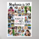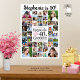 Birthday 42 Photos Kissing Her Decade Goodbye Poster Print -- Create a photo memory display poster print to celebrate a milestone birthday beginning a new decade utilizing this easy-to-upload photo collage with 42 pictures through the years with the funny, editable modern typography design for the saying KISSING HER DECADE GOODBYE (shown with 40's for a 50th birthday) and your custom title (shown with NAME IS 50!) in your choice of colours for the text, graphics and/or background. OPTIONS: The sample is shown in a 24X34" size on Value Matte Paper; other sizes and paper types are available (choose Custom Size for even borders by changing the height and width proportionately AFTER clicking the UNLOCK icon). You can also transfer the design to a foam board, banner, tapestry backdrop or other products or download the file for local printing. ASSISTANCE: For help with design modification or personalization, colour change, resizing or transferring the design to another product, contact the designer BEFORE ORDERING via the Zazzle Chat MESSAGE tab below or email makeitaboutyoustore@gmail.com.