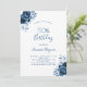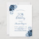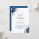 On front: Decorated with florals, flowers, roses in shades of blue. Personalize and add a name and party details. The name and the text: 50th (or any age) Birthday are written with a hand lettered style script, blue coloured letters. Perfect for a winter or spring birthday party!