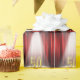 Gold number 50 in a stage spotlight with red curtain backdrop for 50th birthday or anniversary.