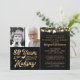 Celebrate an 80th (or any age) birthday for him or her with these black and gold photo party invitations featuring an editable retro calligraphy script typography design saying # YEARS IN THE MAKING which incorporates their age and birth year within the design, accented with soft golden glowing string lights and 2 pictures. The card is also available as an instant digital file download for printing locally or sharing online. ASSISTANCE: For help with design modification or personalization, colour change, resizing, transferring the design to another product or if you would like coordinating items, contact the designer BEFORE ORDERING via the Zazzle Chat MESSAGE tab or email makeitaboutyoustore@gmail.com.