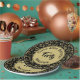 This over-the-hill pattern has a black and gold random number pattern with milestone age number 40 repeated in varied sizes and angles for an all-over print. There is a white square in the centre for your custom text and a gold and white frame around the rim.