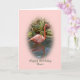 The colours of the pink flamingo are seen against the blue of the water and the green of the rocks on this lovely birthday greeting card.