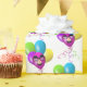 Rainbow birthday balloons on a white with a funny face and black glasses.