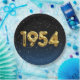 Gold foil balloons for 1954 birth year on gradient black and blue background with night stars for birthday party.