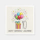Destei's fun original birthday theme design featuring colourful birthday balloons and two present boxes wrapped with pretty bows. The design is framed by cheerful confetti made out of stars and dots. The colour scheme includes colours such as red, pink, blue, yellow, purple, teal, and beige. There are also two personalizable text areas where one is meant for the person's age and another is meant for custom text.