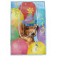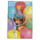 Happy birthday greetings with this cute design featuring a smiling, party hat-wearing Smooth Dachshund puppy surrounded by colourful balloons, confetti and streamers.