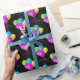 Colorful birthday balloon bouquets with party confetti on black background.