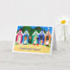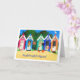 A Birthday Card with 'Happy Birthday' in Welsh and some beach huts from a handpainted paper collage by Judy Adamson. I can easily change the front text on request and the inside is left blank for your own message.