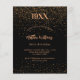 A modern, elegant and invitation. A black background decorated with golden confetti. Personalize and add year of birth, name and details.