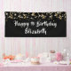 Celebrate any age birthday with this festive black and gold themed banner sign featuring your custom text in modern brush script typography with a border of gold confetti, streamers and lights. Ideal for any age birthday for him or her. CHANGES: The background colour can be changed or choose a styled graphics background and the text font style, colour, size and placement can be changed by clicking on CUSTOMIZE FURTHER in the PERSONALIZE section. Contact the designer via Zazzle Chat or makeitaboutyoustore@gmail.com if you'd like this design modified, on another product or would like coordinating items.