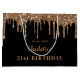A gift bag for a girly and glamourous 21st (or any age) birthday. A classic black background with faux gold glitter drips, paint dripping look. Personalize and add a date, name and year 21. The name is written with a golden modern hand lettered style script.