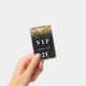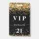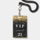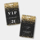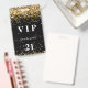 A modern, stylish and glamourous badge for a 21st (or any age) birthday party. A modern, stylish and glamourous badge for a 21st (or any age) birthday party. A black background with faux gold glitter dust. With the text: VIP. Personalize and add name, age, address/date. The name is written with a modern hand lettered style script with swashes.