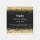 For a glamourous 50th (or any age) birthday party. A stylish black background. Decorated with faux gold confetti, sparkles. Personalize and add a name, age, date and a text. The name is written with a modern hand lettered style script.