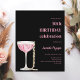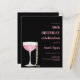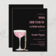 A modern, stylish and glamourous invitation for a Pearls and Prosecco birthday party (any age) A black background with a glass, flute with pink bubbles and pearls. The name is written with a modern hand lettered style script. Personalize and add your party details.