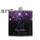 A gift for a girly and glamourous 21st (or any age) birthday party. A stylish black background with elegant purple faux glitter dust. The text: The name is written in light purple with a modern hand lettered style script. Personalize and add a name, age 21 and a date. Add your own message and names on the back.