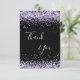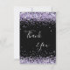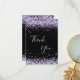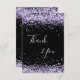 A feminine and elegant birthday thank you card. A black background color. With purple, violet faux glitter dust. On front large hand lettered script and the text: Thank You.