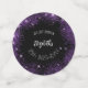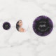 A classic black background decorated with dark purple coloured faux glitter, sparkles. Personalize and add date, name, age and a photo.