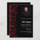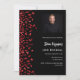A modern, elegant and invitation. A black background decorated with red confetti. Personalize and add photo, a name and party details. White text.