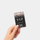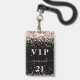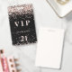 A modern, stylish and glamorous badge for a 21st (or any age) birthday party. A modern, stylish and glamorous badge for a 21st (or any age) birthday party. A black background with rose gold faux glitter dust. With the text: VIP. Personalize and add name, age, address/date. The name is written with a modern hand lettered style script with swashes.