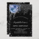 Birthday black silver glitter blue floral invitation