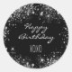 Birthday black silver glitter dust hugs kisses classic round sticker