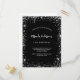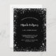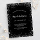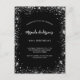 A stylish black background. Decorated with faux silver glitter, sparkles. Personalize and add a name, age and party details. The name is written with a hand lettered style script