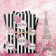 Birthday black white stripes pink florals paris wrapping paper sheet
