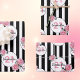 Classic slim black and white vertical stripes as background. With girly, feminine and romantic pink roses as decoration. Perfect for an elegant 21st (or any age) birthday gift for her. Personalize and add a name and age inside the circles. Age number 21 in pink, name in black. The name is written with a hand lettered style script.