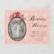 Birthday Blessings scripture postcard with a lovely Victorian style angel print, pretty frame and pink damask background. Designed by Simply Vintage by Robin; artwork courtesy of The Graphics Fairy