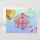 Front: The card has a light blue background. In the centre, there is a large red text that reads “Happy Birthday to You,” decorated with white and red stars. Above the text, there are two white fireworks, and scattered around are small stars. To the right, there are two gift boxes with red ribbons, and in the bottom left corner, there is a golden heart-shaped balloon.