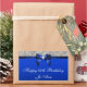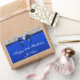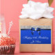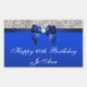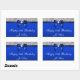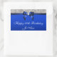 Pretty royal blue and silver any age birthday stickers with a flat graphic image of silver sequins and royal blue bow with white text.