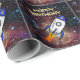 Birthday blue rocket custom name and age wrapping paper