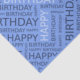 HAPPY BIRTHDAY HAPPY BIRTHDAY. There is no mistaking the message on this smart blue tissue paper! The typographic design using the words HAPPY and BIRTHDAY in shades of blue on a blue background, and you can personalize it with a name in light blue script.