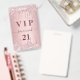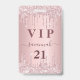 A modern, stylish and glamourous badge for a 21st (or any age) birthday party. A blush pink faux metallic looking background with faux glitter drip, paint dripping look. Personalize and add a name. The name is written with a modern hand lettered style script with swashes. The text: VIP Number 21 is written in a dark rose gold colour. To keep the swashes only delete the sample name, leave the spaces or emoji's in front and after the name.