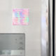 A trendy holographic colored background with unicorn and rainbow pastel colors in pink, purple, rose gold, mint green. Decorated with faux glitter dust in pink. Personalize and add a date and name/age 18 (or any age). The text: Save the Date is written with a large trendy hand lettered style script.