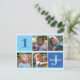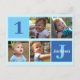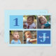 Cool 4 photo carré invitation carte postale pour un bébé garçon ou tout-petit. Célébrez l'anniversaire de votre enfant avec de jolies photos d'eux sur ce ajouter votre propre carte postale photo avec d'adorables carrés bleus. Ajoutez leur nom et leur âge.
