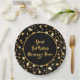 Birthday Brush Script Black Gold Stars Personalize Paper Plate
