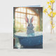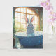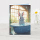 Cute grey bunny in a bathtub with soap bubbles for a birthday.