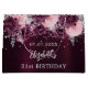 For an elegant 21st (or any age) birthday. A burgundy gradient background colour. Decorated with faux silver confetti and pink and burgundy flowers. Personalize and add a name and age. The name is written with a modern hand lettered style script
