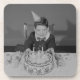 Boy (6-7) sitting at table with birthday cake, portrait | George Marks | AssetID: 82251245