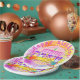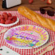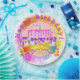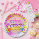 Beautiful bright and colourful, personalized birthday party plates. Design includes happy birthday in a half circle on the upper part of the plate, a birthday cake and, a banner with stars that has the child's name. Colours include, yellow, pink, purple, aqua, orange and more. Just add your personal message at the personalize prompt, then select colours at the customize prompt. HAMbyWhiteGlove aka HAMbyWG