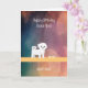 Birthday card for a Lhasa Apso Dog standing on a yellow bar with a designer, colorful background, and an illustrated dog bone. Thanks to the Hungryjpeg for some of the elements in the design. Larger print on this copy.