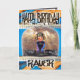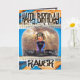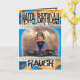Birthday card with a DJ on the decks and Raver writing, a unique design by physical alteration and sold exclusively by Zazzle