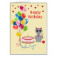 Birthday cat, hearts and multicolored balloons on ivory Greeting Card. All texts ready to be personalized.
