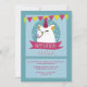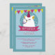 This white cat is ready to party! She wears a party hat and has a noise maker in her mouth. Party flags trim the upper border of the invitation. (<a href='http://www.freepik.com/free-vector/nice-birthday-cat-card_897590.htm'>Designed by Freepik</a>). <br/><br/>The card is easy to customize with your wording, font, font colour, paper shape options and choice of six paper types.<br/><br/>Not exactly what you're looking for? All our products can be custom designed to meet your needs at no extra charge.<br/><br/>Simply contact us at askcottonlamb@gmail.com<br/><br/>Coordinating products available: Just ask us!