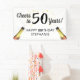 Celebrate any age adult birthday with this fun and festive editable CHEERS TO # YEARS banner sign featuring a celebratory drink from a wine, beer or champagne bottle, modern script typography and your custom text in your choice of text font styles and colours as well as the background colour (shown with black text on a white background for a 50th birthday). BANNER OPTIONS: The sample is shown in the 3x5' size; other sizes are available on the ordering page as well as the option of transferring the design to a foam board, poster, tapestry or other product or have the designer convert it to a DIGITAL DOWNLOAD file BEFORE ordering to print locally. ASSISTANCE: For help with design modification or personalization, resizing, transferring the design or if you would like coordinating items, contact the designer BEFORE ORDERING via the Zazzle Chat MESSAGE tab or email makeitaboutyoustore@gmail.com.