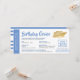 Personalize your own blue and gold boarding pass ticket invitation for a dinner cruise or sunset booze cruise aboard a chartered boat or yacht with our easy to edit template with a nautical stripe design on the back and simple traditional ticket-style fonts on the front. The card is an oversized ticket design on a 4" x 9.25" card that stands out in the mail and gets the attention of your guests. Contact the Paper Grape Store Designer for information about coordinating items for the day of your party cruise, or design your own by clicking 'customize further'.