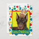 Celebrate a birthday with this whimsical Doberman Dog Greeting Card. With a cupcake balanced on it's head, this design is sure to bring a smile and giggles! BTW, This design has several versions, with different background colours. There is also an invitation to a Party version.